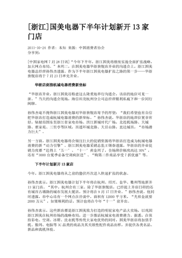 [浙江]國美電器下半年計劃新開13家門店(3.73KB)