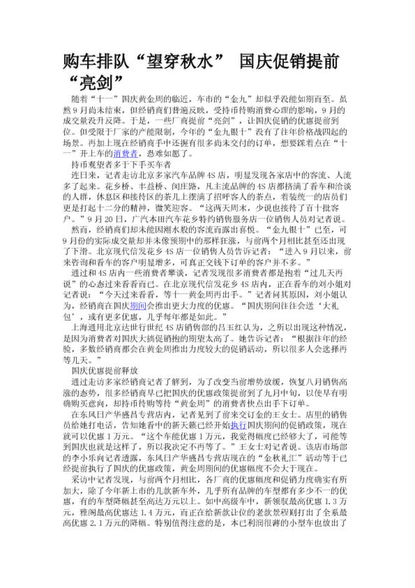 購車排隊“望穿秋水” 國慶促銷提前“亮劍”