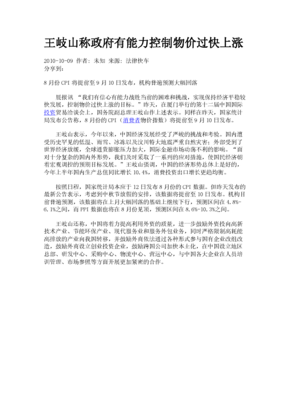 王岐山稱政府有能力控制物價過快上漲(3.18KB)