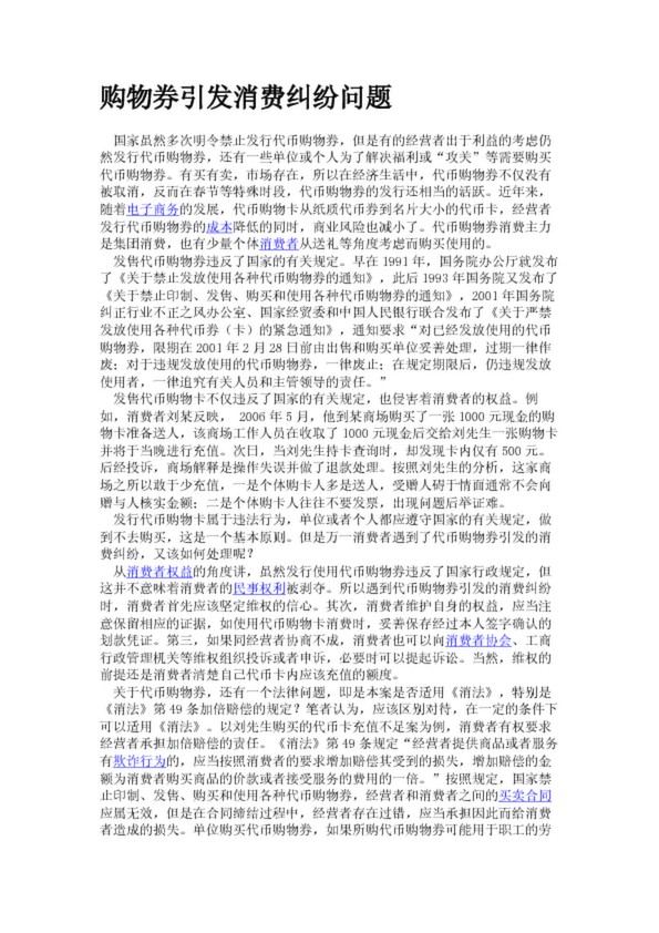 購物券引發消費糾紛問題