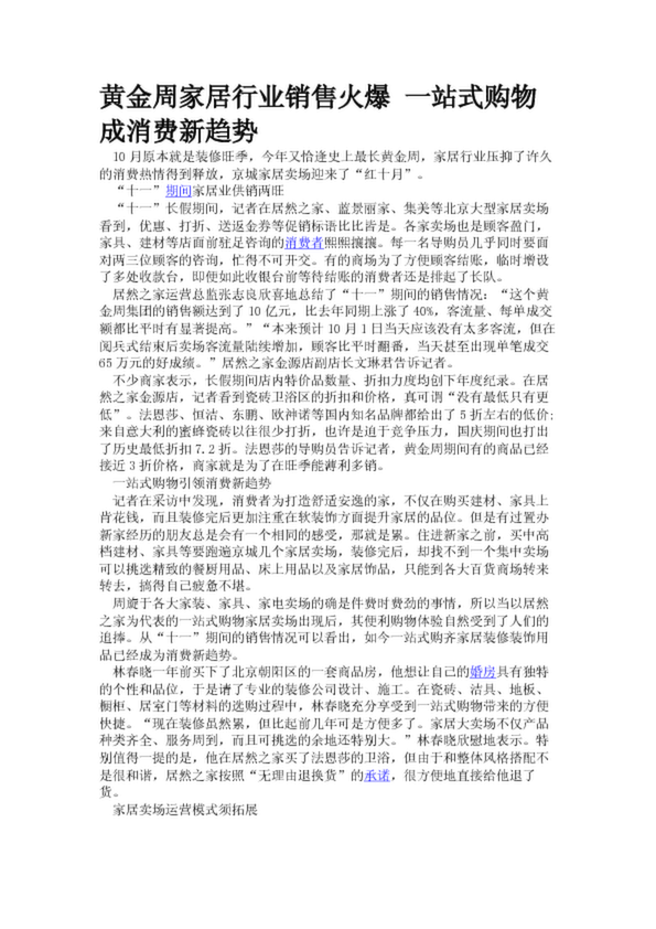 黃金周家居行業銷售火爆 一站式購物成消費新趨勢