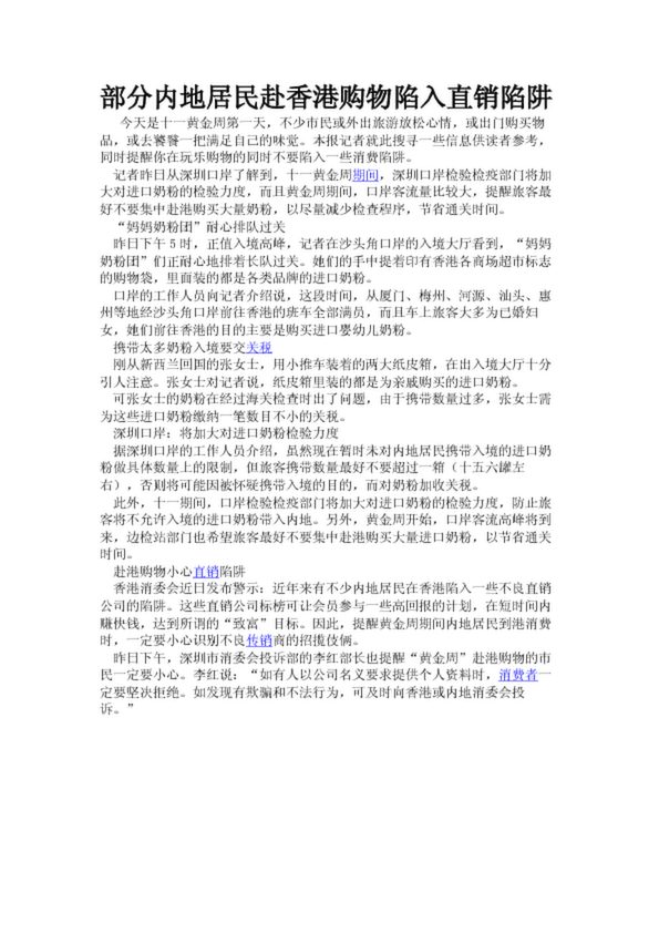 部分內地居民赴香港購物陷入直銷陷阱