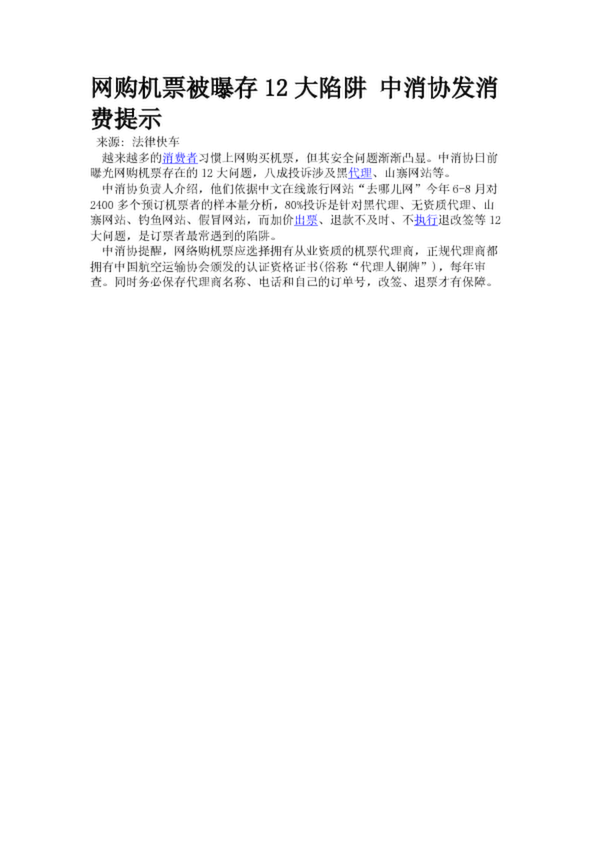 網購機票被曝存12大陷阱 中消協發消費提示(17.62KB)