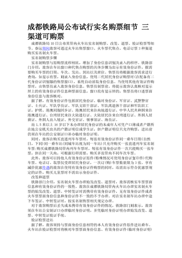 成都鐵路局公布試行實名購票細節 三渠道可購票(26.17KB)