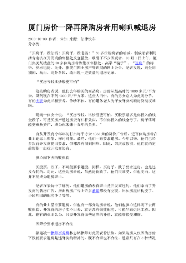廈門房價一降再降購房者用喇叭喊退房