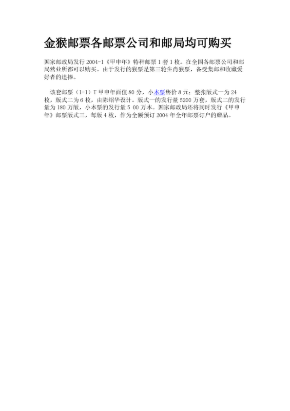 金猴郵票各郵票公司和郵局均可購買(16.35KB)