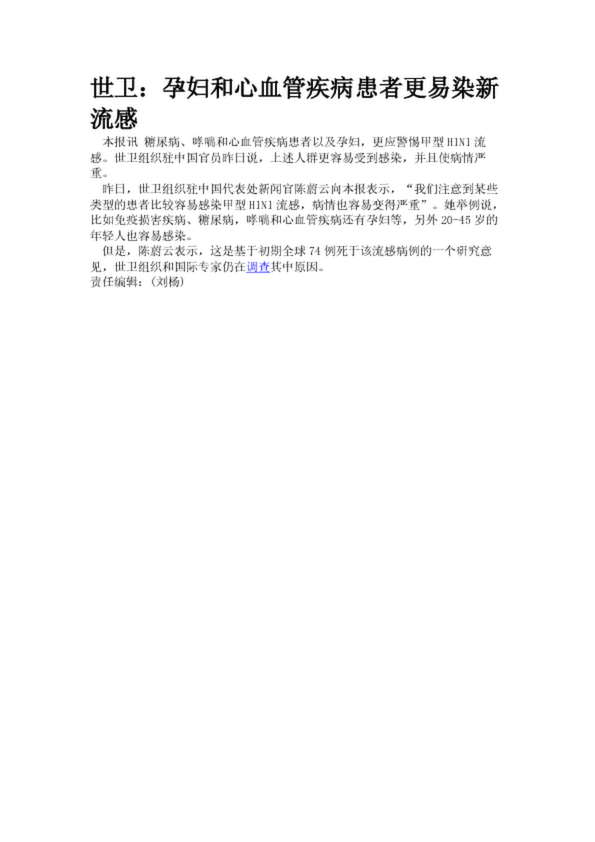 世衛:孕婦和心血管疾病患者更易染新流感(16.64KB)