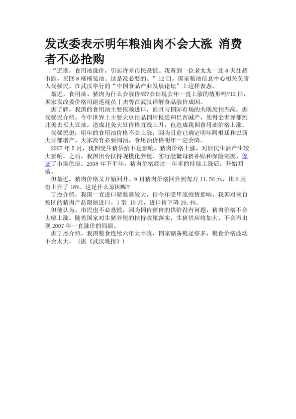 發改委表示明年糧油肉不會大漲 消費者不必搶購(18.65KB)