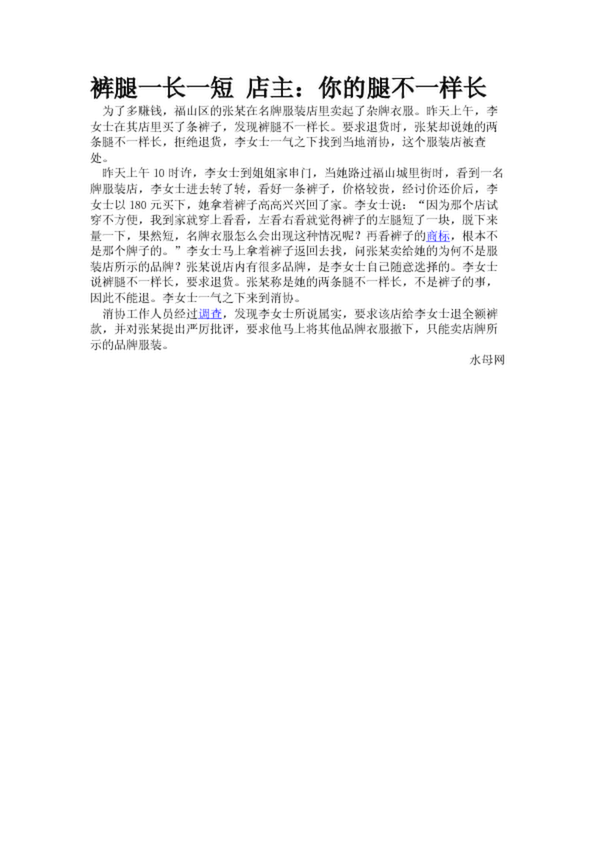 褲腿一長一短 店主:你的腿不一樣長
