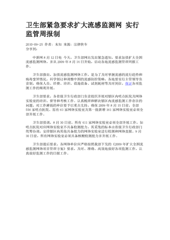 衛生部緊急要求擴大流感監測網 實行監管周報制