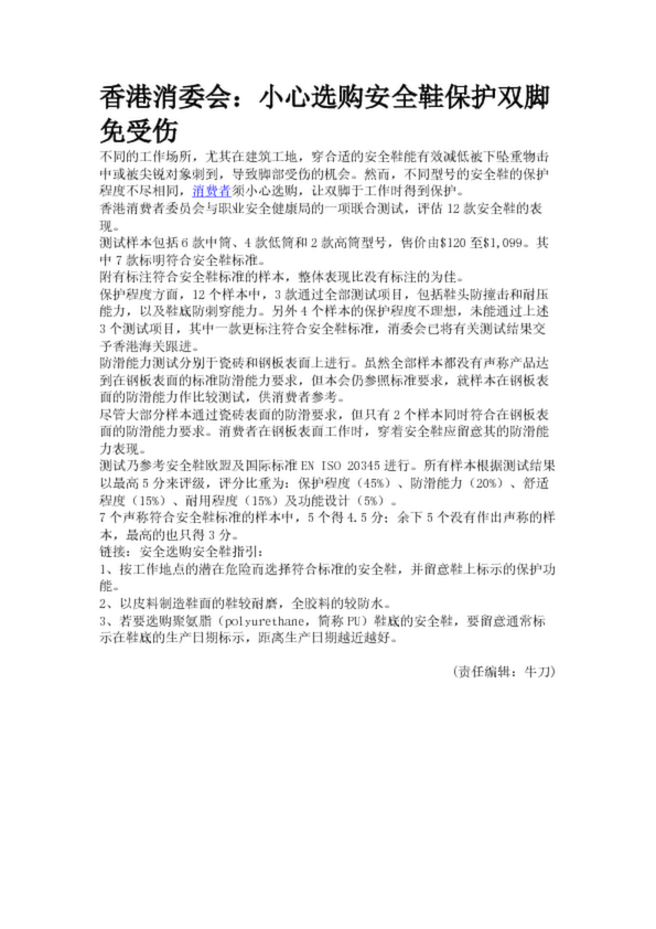 香港消委會:小心選購安全鞋保護雙腳免受傷(20.36KB)