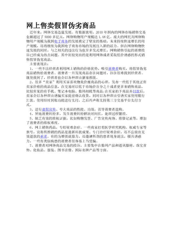 網上售賣假冒偽劣商品