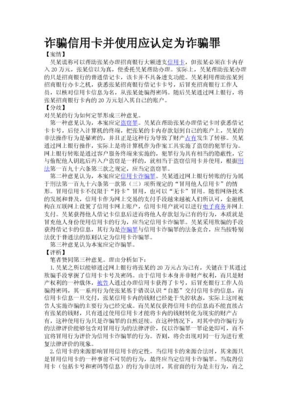 詐騙信用卡并使用應認定為詐騙罪
