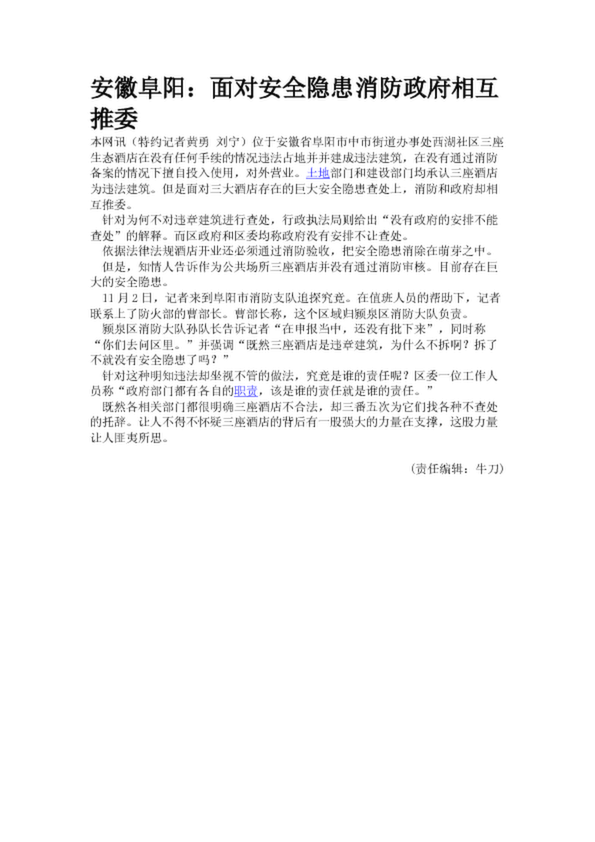 安徽阜陽:面對安全隱患消防政府相互推委(19.06KB)