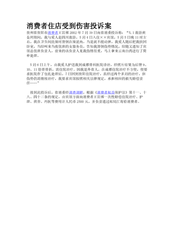 消費者住店受到傷害投訴案(17.58KB)
