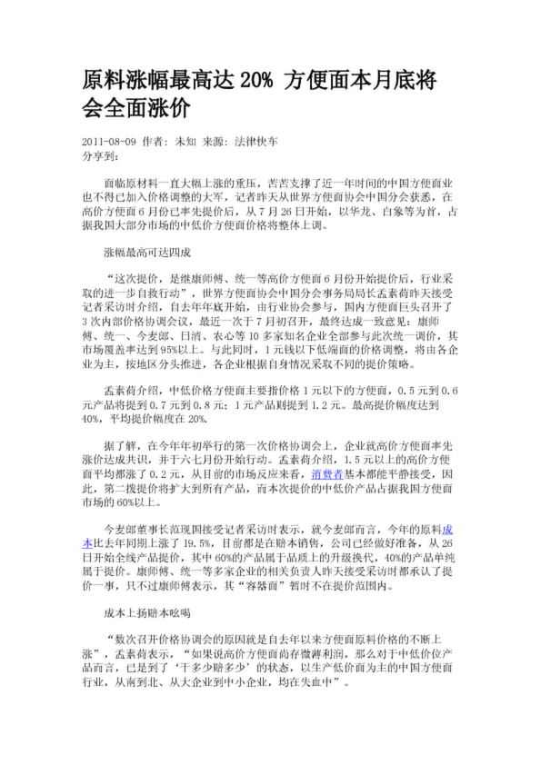 原料漲幅最高達20% 方便面本月底將會全面漲價