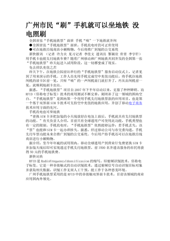廣州市民“刷”手機就可以坐地鐵 沒電照刷