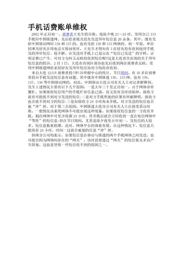 手機話費賬單維權