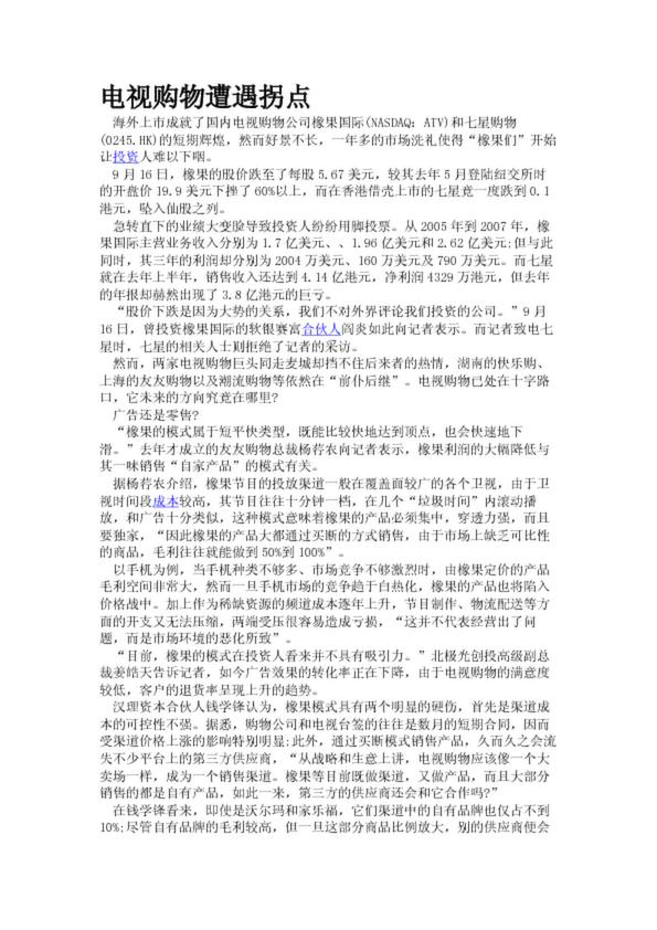 電視購物遭遇拐點