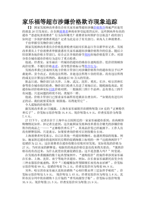 家樂福等超市涉嫌價格欺詐現象追蹤