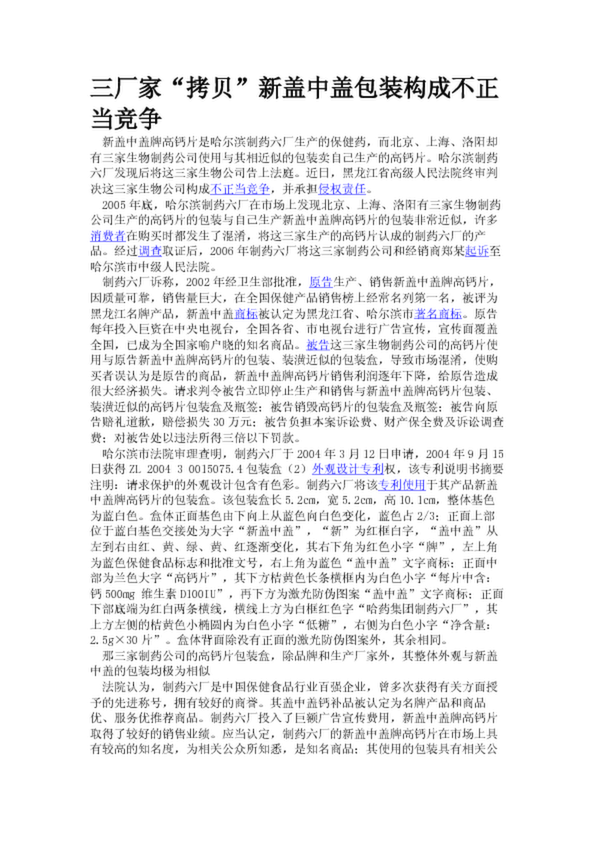 三廠家“拷貝”新蓋中蓋包裝構成不正當競爭(26.69KB)