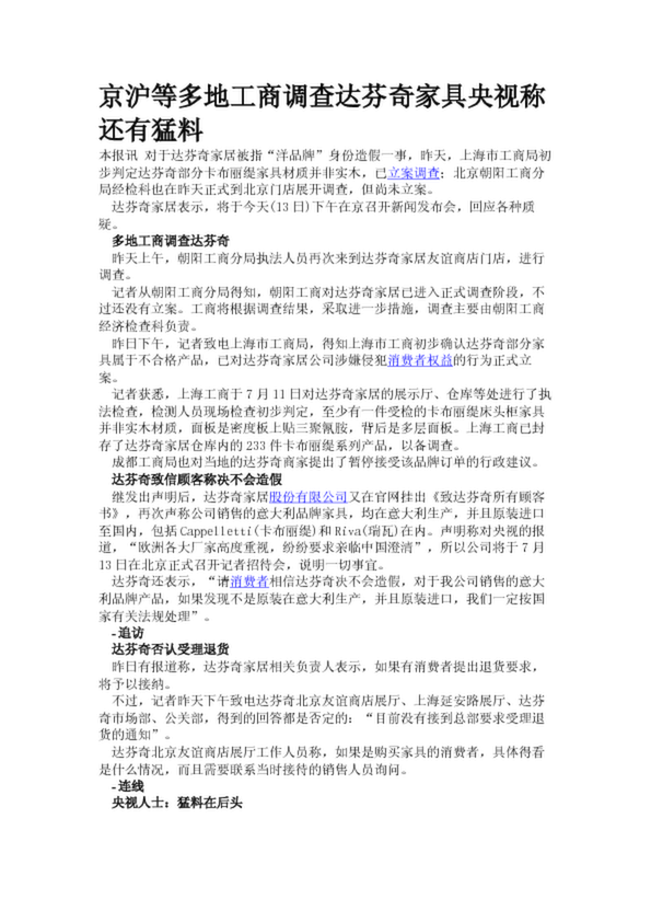 京滬等多地工商調查達芬奇家具央視稱還有猛料(28.08KB)
