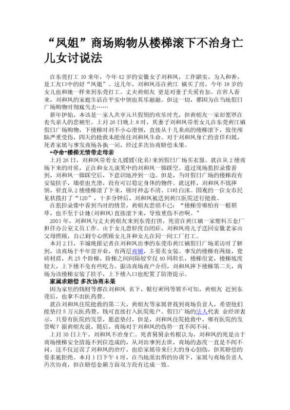 “鳳姐”商場購物從樓梯滾下不治身亡兒女討說法