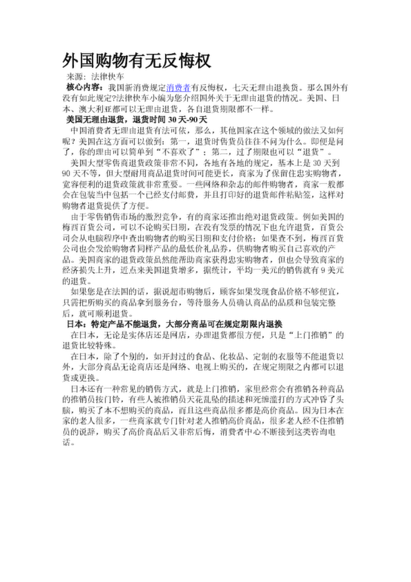 外國購物有無反悔權