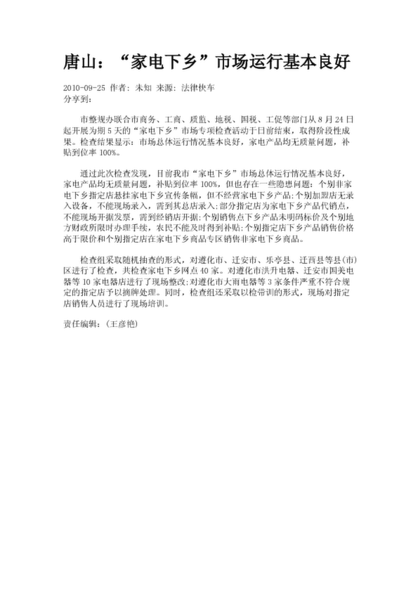 唐山:“家電下鄉”市場運行基本良好(2.64KB)
