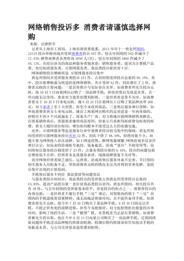 網絡銷售投訴多 消費者請謹慎選擇網購