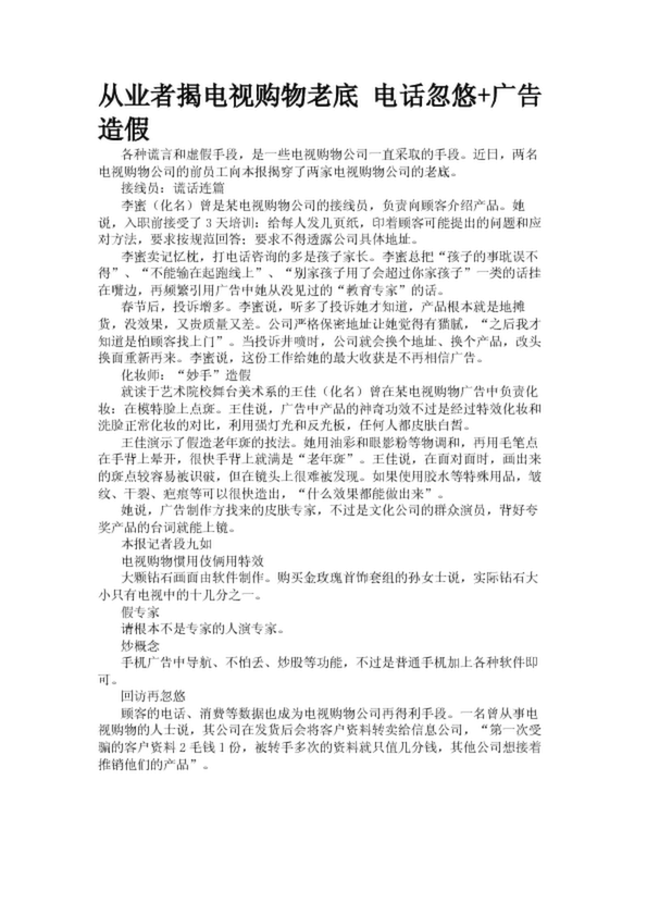 從業者揭電視購物老底 電話忽悠+廣告造假(21.28KB)