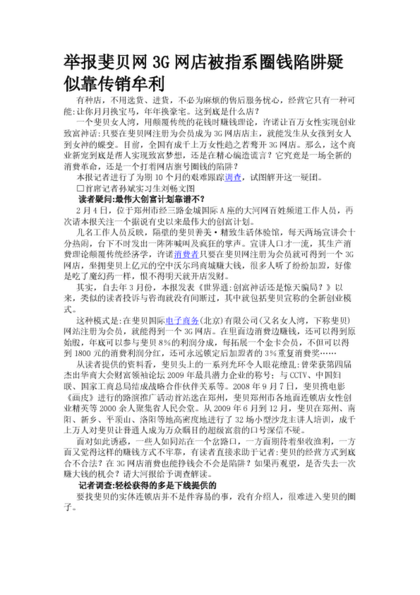 舉報斐貝網3G網店被指系圈錢陷阱疑似靠傳銷牟利