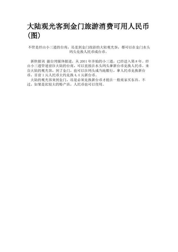 大陸觀光客到金門旅游消費可用人民幣(圖)
