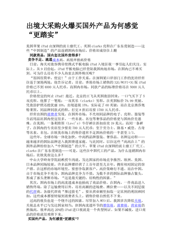 出境大采購火爆買國外產品為何感覺“更踏實”(29.89KB)