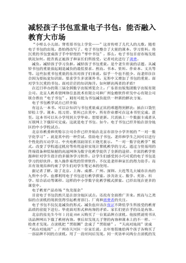 減輕孩子書包重量電子書包:能否融入教育大市場