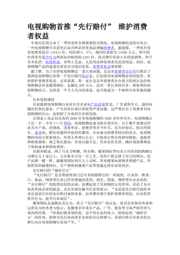 電視購物首推“先行賠付” 維護消費者權益