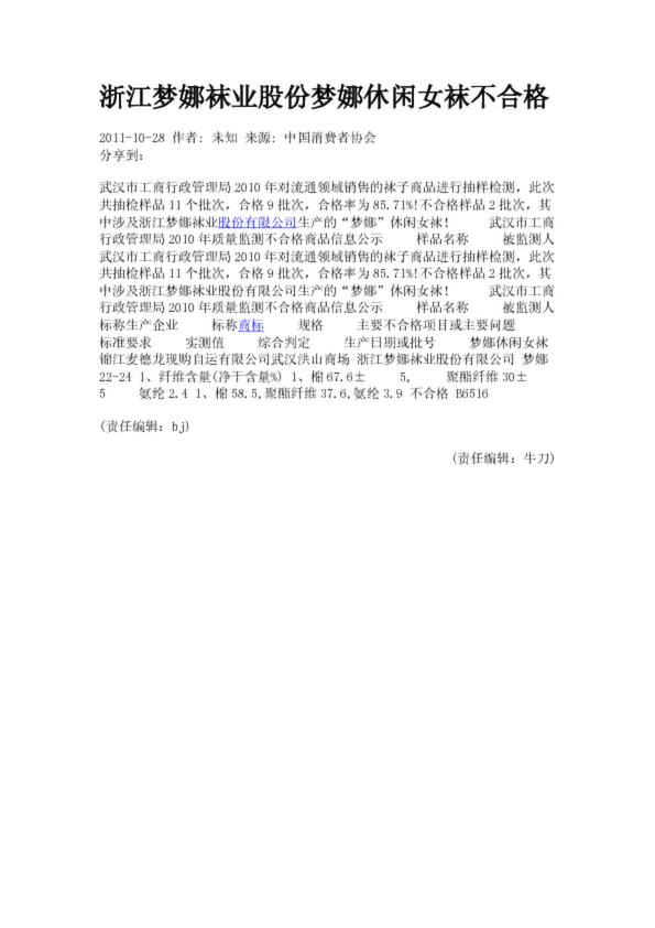 浙江夢娜襪業股份夢娜休閑女襪不合格(2.77KB)