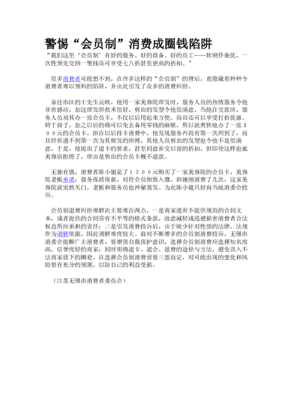 警惕“會員制”消費成圈錢陷阱(18.83KB)