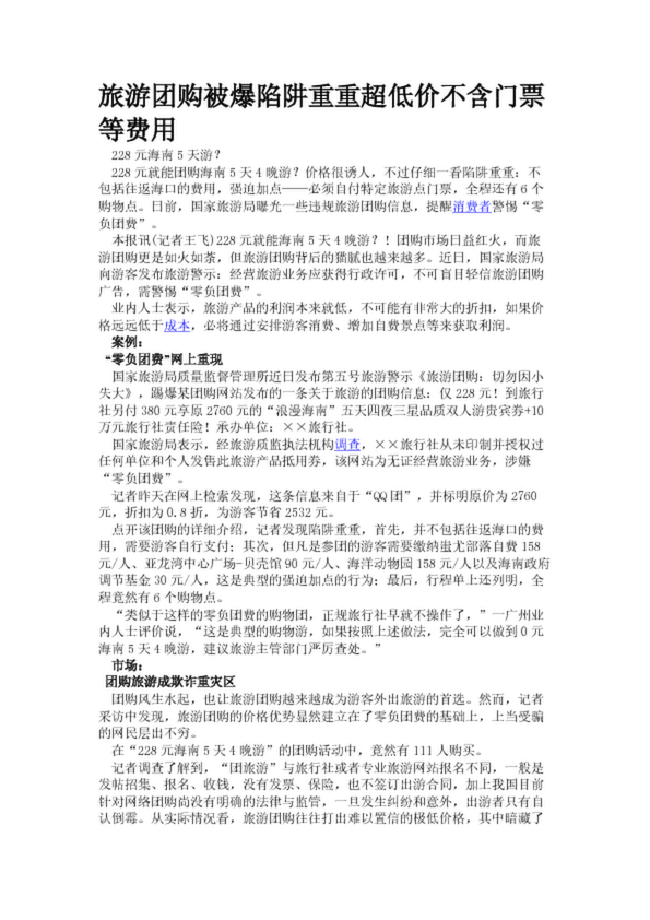 旅游團購被爆陷阱重重超低價不含門票等費用(24.29KB)
