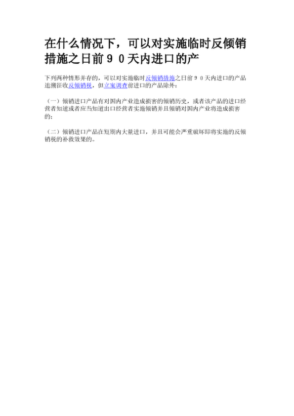 在什么情況下,可以對實施臨時反傾銷措施之日前90天內進口的產