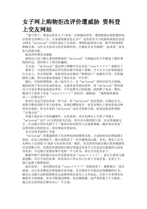 女子網上購物拒改評價遭威脅 資料登上交友網站