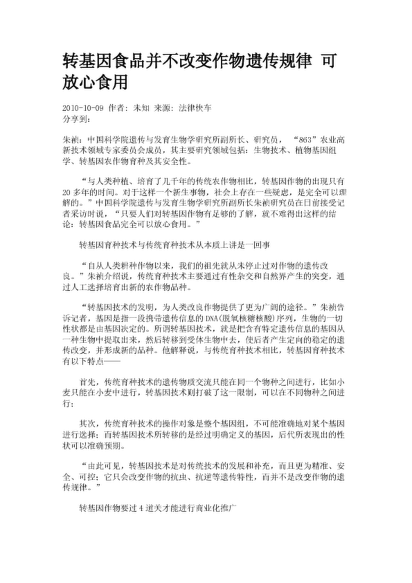 轉基因食品并不改變作物遺傳規律 可放心食用(4.99KB)