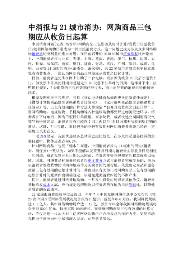 中消報與21城市消協:網購商品三包期應從收貨日起算