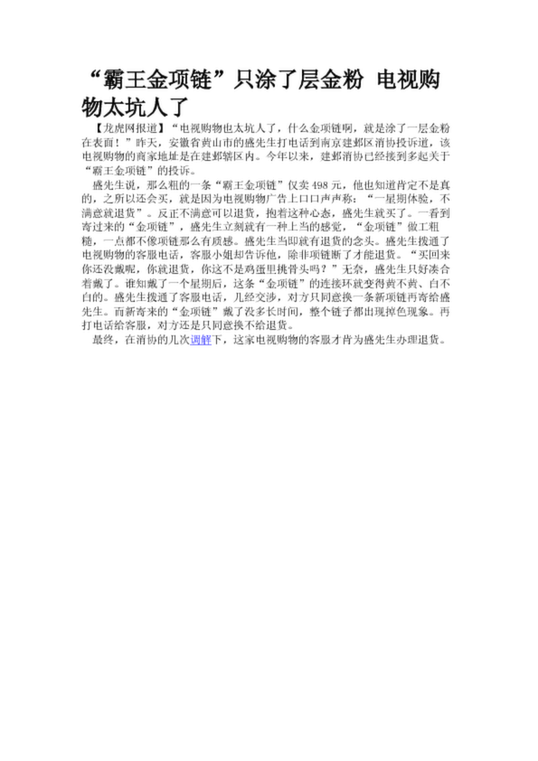 “霸王金項鏈”只涂了層金粉 電視購物太坑人了