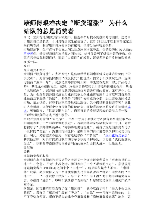 康師傅艱難決定“斷貨逼漲” 為什么站隊的總是消費者