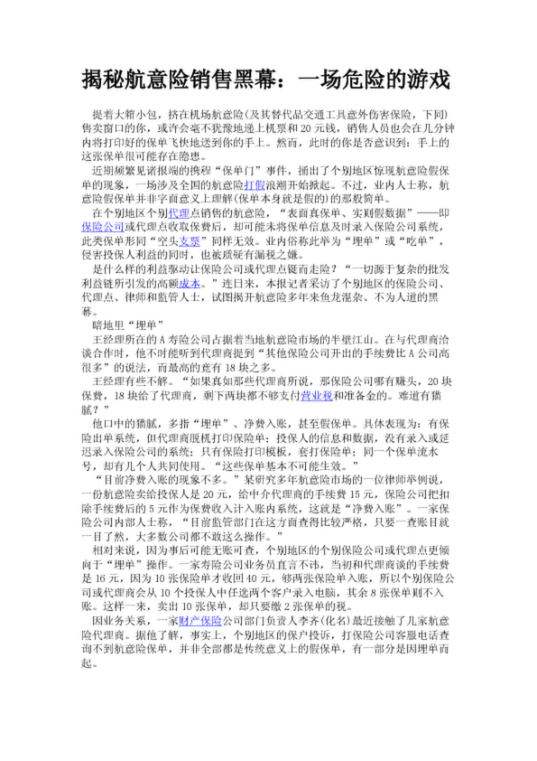 揭秘航意險銷售黑幕:一場危險的游戲(28.13KB)