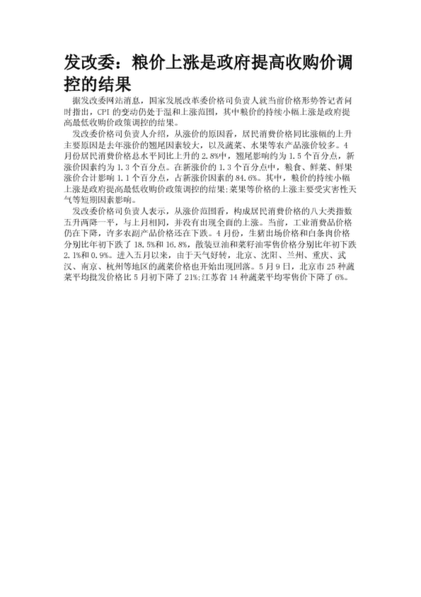 發改委:糧價上漲是政府提高收購價調控的結果