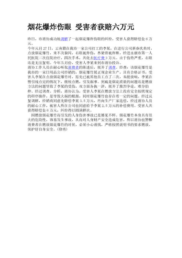 煙花爆炸傷眼 受害者獲賠六萬元(18.33KB)