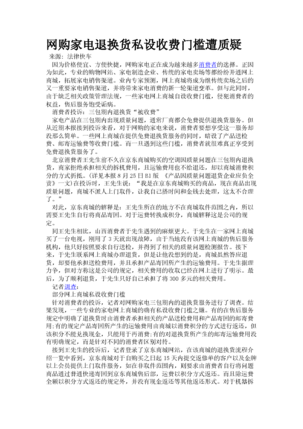 網購家電退換貨私設收費門檻遭質疑(26.98KB)