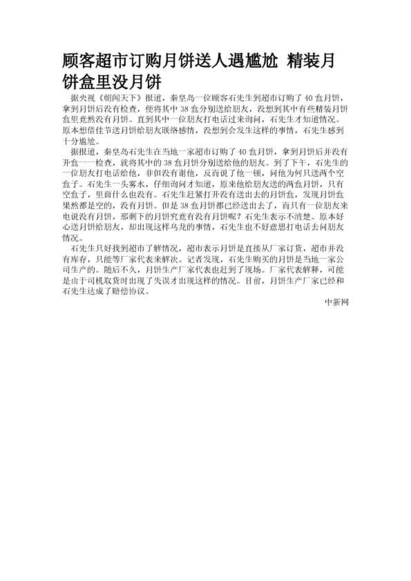 顧客超市訂購月餅送人遇尷尬 精裝月餅盒里沒月餅